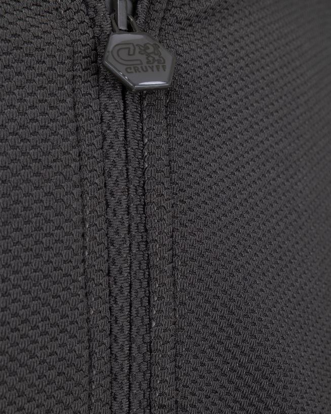 sudadera cruyff santiago para hombre en color verde oscuro. una camiseta de chándal con un ajuste ceñido confeccionada con una lujosa tela de poliéster con textura. equipado con cremallera de marca y dos bolsillos laterales con cremallera. rematado con una sutil insignia de Cruyff.
