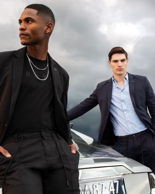 pantalón cruyff segura para hombre en color negro. Pantalón slick de corte ajustado confeccionado en tejido elástico italiano. provisto de dos bolsillos laterales, botones con la marca cruyff y cordones ajustables.