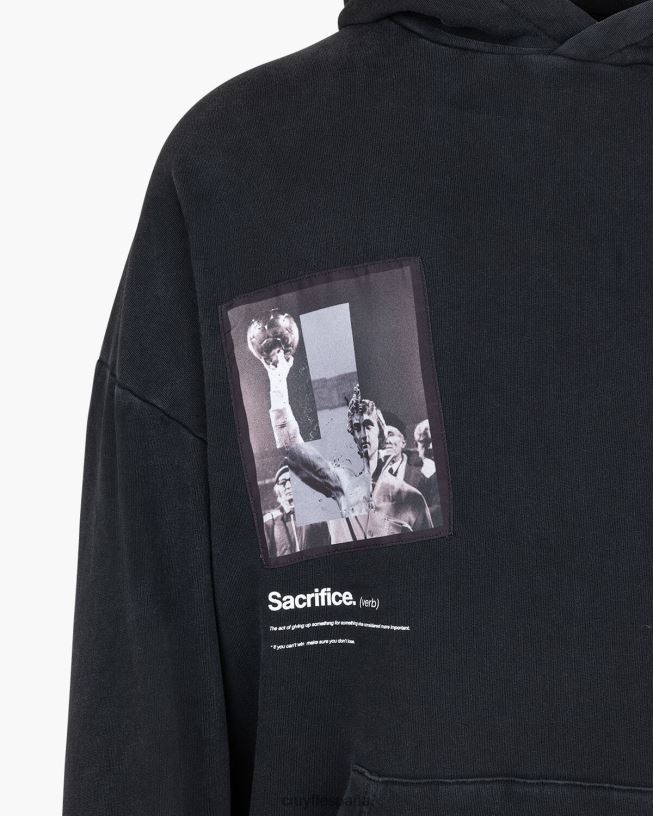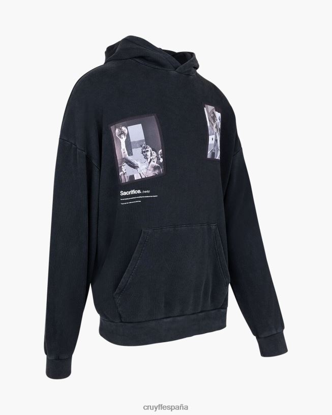 sudadera con capucha cruyff victoria en negro. una sudadera con capucha provista de un corte oversize. con un lavado ácido y un gráfico serigrafiado en el pecho.