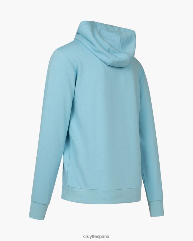 traje cruyff para hombre en color azul cielo. un chándal hecho de algodón/poliéster y tiene un ajuste regular. la sudadera con capucha tiene un bolsillo canguro y una gran marca c-lion cruyff sports en el pecho. los pantalones tienen cordones en la cintura, la marca deportiva c-lion cruyff y dos bolsillos laterales. 80 % algodón / 20 % poliéster