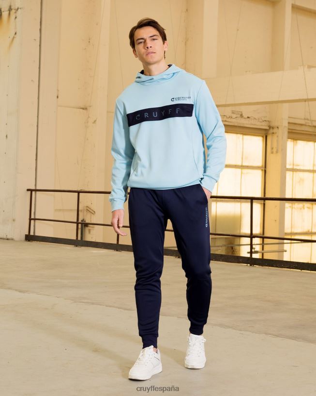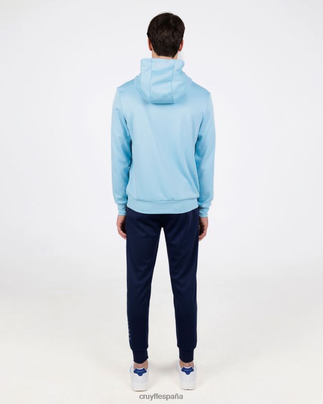 el traje cruyff howler para hombre en color azul claro y marino. un chándal confeccionado en 100% poliéster, que está cepillado en el interior, lo que lo hace suave al tacto. siempre con un ajuste normal. la sudadera con capucha está equipada con una capucha, la marca cruyff en la solapa y un logotipo deportivo cruyff en el lado izquierdo del pecho. los pantalones deportivos se presentan con la marca deportiva cruyff en la pierna izquierda y tienen dos bolsillos. los pantalones también están hechos de 100 % poliéster.