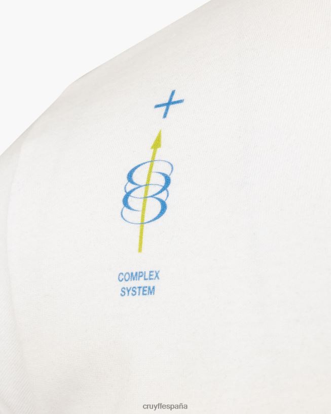 la camiseta cruyff alex en blanco es una camiseta de corte regular que presenta un gran gráfico surrealista del hexágono cruyff en el pecho. hecho de 100% algodón.